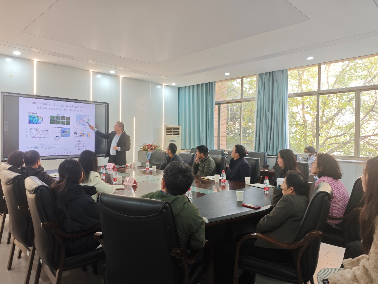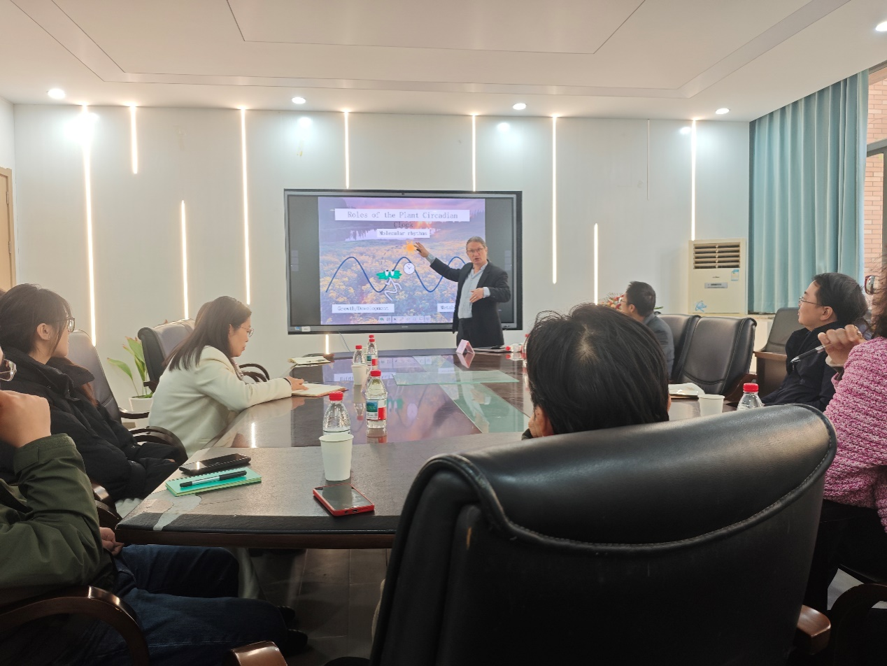 2025年12月1日,英国约克大学植物生物系主任Seth Jon Davis教授应我院鹿启祥老师邀请,到访浙江理工大学生命科学与医药学院,并做了题为“The history of the plant circadian clock”的专题学术讲座。学院副院长付彩云、学院相关研究方向教师、研究生以及留学生参加了讲座与讨论。
