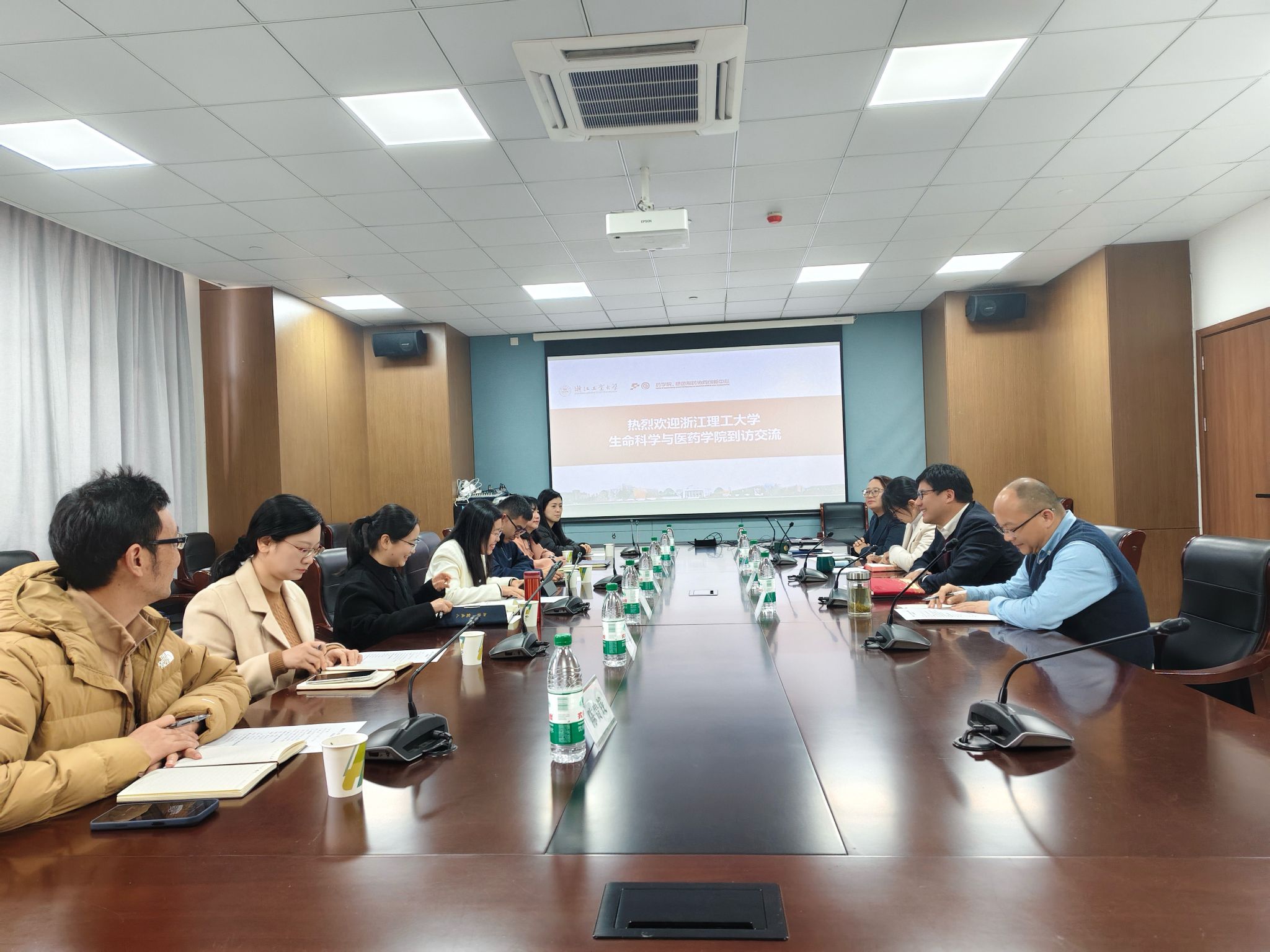 王亚军对我院一行的到访表示热烈欢迎,详细介绍了浙江工业大学药学院与协同创新中心在学科建设、科研创新、人才培养、成果转化及社会服务等方面的进展与成效。付彩云对浙江工业大学药学院及中心的周到安排表示感谢,并介绍了我院的发展历程、师资结构、人才培养体系、科研方向与未来规划。